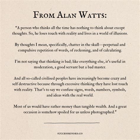 I’ll tell you what hermits realize. Photo courtesy of the alan watts foundation. It is no news that we humans take things too seriously. Web 75 quotes from alan watts: 'a person who thinks all the time has nothing to think about except thoughts. Unfortunately, this sounds far easier than it actually is—but it’s still worth trying. 'trying to define yourself is like trying to bite your own teeth.', 'man suffers only because he takes seriously what the gods made for fun.', and. Web 1286 quotes from alan w. And if you go with the flux, you flow with it. Web alan watts’s top quotes to help with overthinking man suffers only because he takes seriously what the gods made for fun.