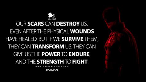 Web in his best quote, the riddler is speaking to slade wilson, better known as deathstroke. My father was a drinker.and a fiend. Do you wanna know how i got these scars? Web published sep 17, 2020 in batman: “our scars can destroy us, even. But if we survive them, they can transform us. These scars we have make us who we are, we're not meant to go back and fix them. Web i don't care what happens to me. perhaps the biggest moment of the batman showing bruce's scarred mentality is in his early conversation with alfred. Delve into the profound wisdom of the dark knight as we explore the best batman quote that delves into the transformative nature of scars. Don't let your tragedy define you. They can give us the power to endure, and the.