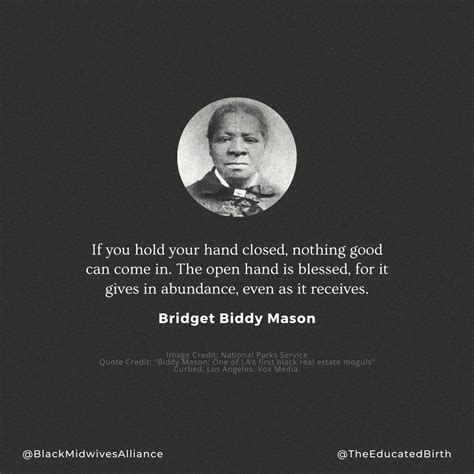 Biddy Mason Quotes. I just live my life. The open hand is blessed, for it gives in abundance, even as it receives.”.