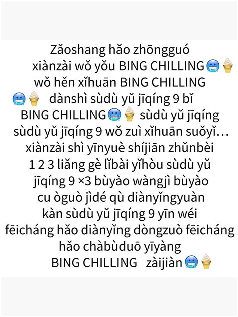 In the lyrics, john cena greets china and says he likes ice cream, but fast and furious 9 is on top of his preferences. It's not a brand it's just the word for icecream. One of the most popular aspects of the video was cena saying ice cream in chinese, which was commonly written phonetically in english as bing chilling. on june 28th, 2021, youtuber apicalshark posted the original video with the title, john cena eats bing chilling in 1080p, gaining over 835,000 views (shown below). Wǒ fēicháng xǐhuān bīngqílín, dà nsh ì “sùdù yǔ jīqíng 9” bǐ bīngqílín hǎo ; Web ‘bing chilling’ has taken over social media and it’s all thanks to john cena. Web “good morning, china.now i have ice cream.i like ice cream very much.but “fast and furious 9″ is better than ice cream.” john cena sang. Including singing using the ice cream as a microphone. Web bing chilling in pinyin. He then goes on to just say he likes ice cream and some other silly stuff. I like ice cream very much, but fast and furious 9 is better than ice cream.