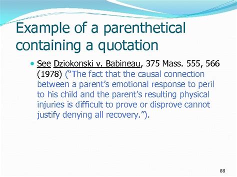 Try to acclimate the reader and make it very easy for him or her to understand why you are citing to this source as opposed to any other. Problems, cases, and materials (2006). Rule 1.5 (b) provides more detail on the order of parentheticals. Try to include parentheticals whenever possible to describe to your reader what the case held or why it is pertinent to the discussion. Web parenthetical use is governed in part by the bluebook and in part by our own writing objectives. Web when reviewing this example, please note that (1) the order of the accompanying parentheticals follows the same order of parentheticals identified on page 60 of the bluebook, and (2) there is no parenthesis (“)”) between. When you are citing to a work that has been published by the same publisher more than. Web quoting or citing parentheticals. After noting whether a case was cited or quoted include the full case citation following the same rules and typeface conventions as any other case citation (see rule 10.6.3). Refer to rule 10.6.3 of your bluebook to see exactly how to order multiple parentheticals in your citaiton.