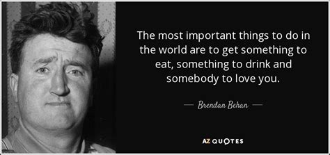 Brendan Behan Quotes. Brendan behan’s most popular book is borstal boy. The most important things to do in the world are to get something to eat, something to drink and somebody to love you.