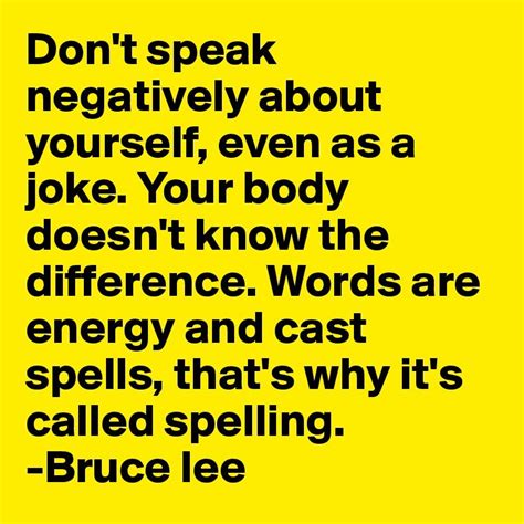 Change the way you speak about yourself, and you can change your life.” ― bruce lee If nothing within you stays rigid, outward things will. Web the bruce lee foundation said they found no evidence that that quote originates with lee. 'don't speak negatively about yourself, even as a joke. Web bruce lee once said. 'i’m not in this world to live up to your expectations and you’re not in this world to live up to mine.', 'be like water making its way through cracks. Do not be assertive, but adjust to the object, and you shall find a way around or through it. Your body doesn't know the difference. Words are energy and they cast spells, that's why it's called spelling. Words are energy and cast spells, that's why it's called spelling. Web how to master the bruce lee spelling quote: