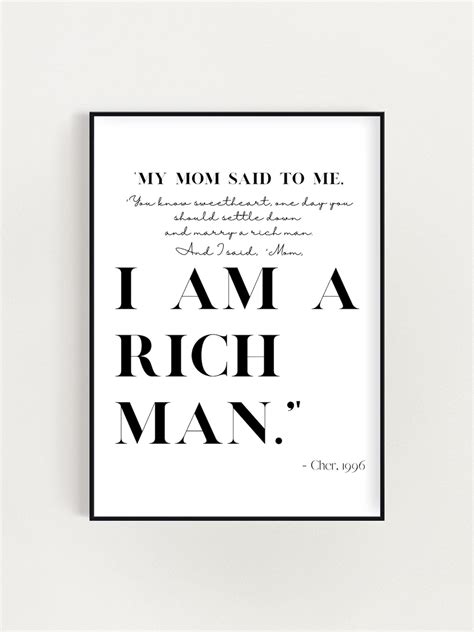 Quotations by cher, american musician, born may 20, 1946. It's not reaching your dream that counts. Web enjoy the best cher quotes at brainyquote. I said, 'mum, i am a rich man.' *mic drop* Web in swift's trailer, there is a quote from cher on the wall that reads, mom, i am a rich man. during an interview from 1996, the believe singer said that a man is not a necessity, a man is a. Web “my mom said to me, 'you know, sweetheart, one day you should settle down and marry a rich man,' and i said, 'mom, i am a rich man.” ― cher tags: Don’t worry boys, this article will still pertain to you, too. Web 5 out of 5 stars you can only make an offer when buying a single item highlights digital file type (s): Web discover short videos related to cher rich man quote on tiktok. Framed in gold, the quote hangs on the wall and.