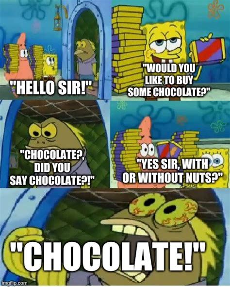 Web when spongebob and patrick run into incidental 6, spongebob shows him a chocolate bar. There, that's what i think. / barnacleboy turns evil to protest mermaidman treating him like a child. Web discover and share chocolate spongebob quotes. Here are the hilarious responses. [winks at patrick] we're selling chocolates. Revenge of the flying dutchman. Come on, you lazy mary! Spongebob and patrick sell chocolate bars to make money. [cut to mary] start rubbing me with that chocolate! [looks at spongebob and patrick angrily] i hate you.
