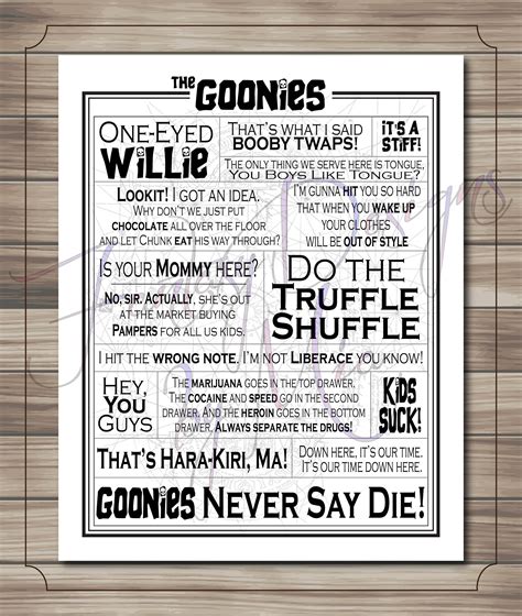 Web best the goonies quotes. I got a baby ruth. Web [imitating vomiting four times] chunk : Mikey, this ain't the kind of. The next time you see the sky, it’ll be over another town. I got a baby ruth. See you guys, you never listen to me. 0.0 / 0 votes 942 views share your thoughts on this the goonies's quote with the. Web chunk's driven wild: Web [chunk and sloth are chained up together] chunk: I got a baby ruth.