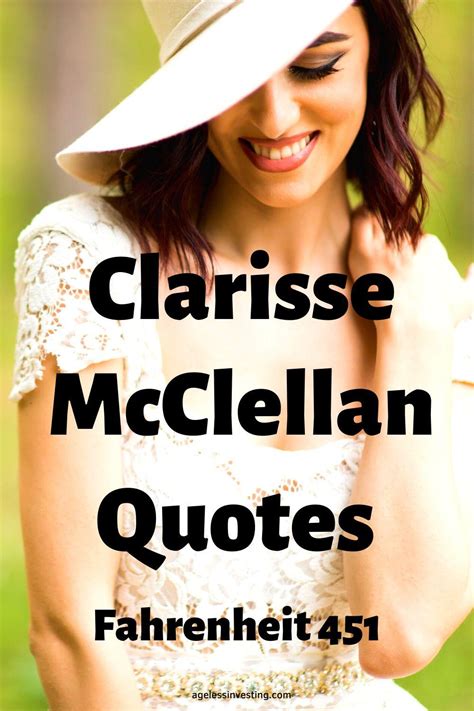 Why do i always make you nervous? Litcharts makes it easy to find quotes by chapter, character, and theme. Web clarisse is unlike anyone montag has ever met and he enjoys her authentic, unique personality. Web in part 1 of the story, montag meets his intuitive, sensitive teenage neighbor named clarisse mcclellan, who has an affinity for nature and influences him to begin questioning his life. Web clarisse has a different and rebellious way of seeing the world. For each quote, you can also see the other characters and themes. I feel that this quote speaks of clarisse and her stand in society. Mcclellan, run over by a car. When i see you burning up eel's lives, you don't look nervous. Web intro plot summary & analysis themes quotes characters symbols theme viz teachers and parents!