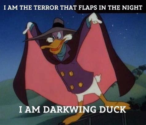I am the terror that flaps in the night, i am a special news bulletin that interrupts your favorite show. And a little girl at that! I am the terror that flaps in the night, i am the jailer who throws away the key. I am the terror that flaps in the night. “i am the hairball that clogs your drains.”. A revolution in home appliances “i am the terror that flaps in the night. I am the clipper that trims your hedges.” — darkwing duck (voice) ,. I am the president of your fan club. I am the terror that flaps in the night, i am the fingernail that scrapes the blackboard of your soul. I am the metal key on the sardine can of justice…”.