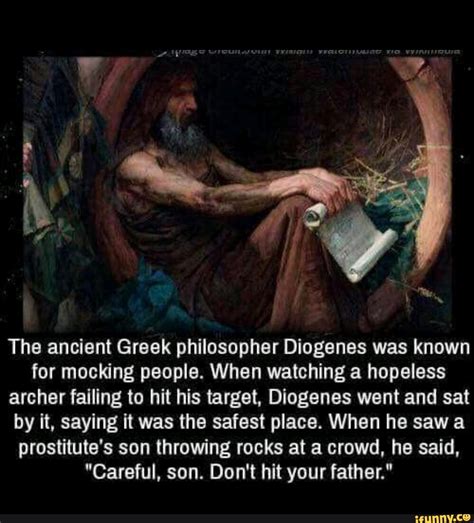 “aren’t you ashamed, you who travel backward down the entire route of existence, and criticise me for going backward along the path of the promenade? It is not that i am mad, it is only that my head is different from yours i wish it were as easy to banish hunger by rubbing the belly. The sound is all they have to offer.” ~ diogenes. Instead, he encouraged people to live a life of intentional hardship and not be bound by social conventions. 100 copy quote i pissed on the man who called me a dog. Why was he so surprised?” ~ diogenes. Web with characteristic humor, diogenes dismissed his ill fortune by saying, if manes can live without diogenes, why not diogenes without manes? [14] diogenes would mock such a relation of extreme dependency. Diogenes i do not know whether there are gods, but there ought to be. Web history historical figures 5 sharp quotes from diogenes, the funniest ancient greek philosopher by: Thus it is evident that alexander was not entirely destitute of better feelings;