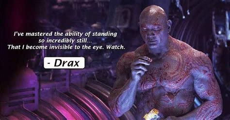Drax Invisible Quote. Drax practices being invisible when gamora & star lord were kissing scene hd [1080p] the footage contained herein is property of disney tm. There's no telling how long drax can.