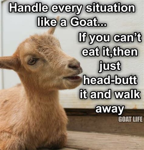 My goats are not contemplative, accepting, or introspective. What is a goat’s favorite animal at the zoo? Web funny goat quotes & captions i’m a goat. It definitely is a hillbilly! What is a little goat’s favorite nursery rhyme to sing? Because no matter what, they will butt in! Michael jordan lost, but that doesn't mean he wasn't the goat. Web check out our funny goat quotes selection for the very best in unique or custom, handmade pieces from our kids' crafts shops. Everybody knows that goats are the new cats. Why did the farmer stop stuffing goats into his truck? Web counting the words, the postmaster tells the goat, “well, for the same price, i can put four more ‘maas’ for you.” the goat looks at him and scoffs, “but then it wouldn’t make any sense!” what do you call a goat that enjoys cleaning?