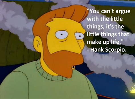 Hank Scorpio Quotes. [homer has just stopped one of scorpio's enemies from escaping, much to his delight] when you go home tonight, there's gonna be another story on your house!. Why didn't i think of that?