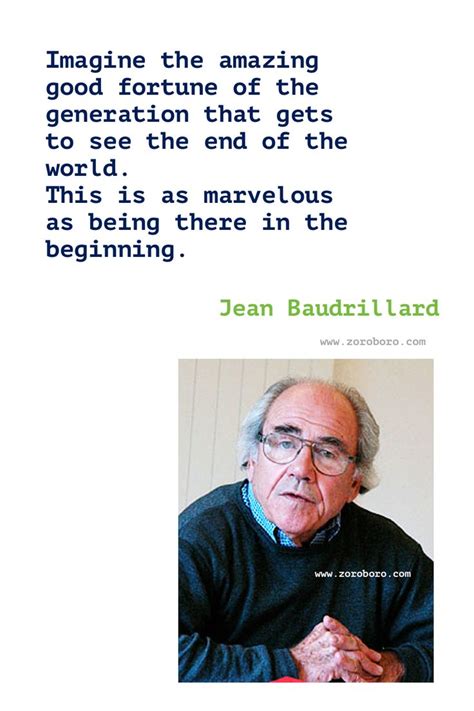 Jean Baudrillard Quotes. Quotations by jean baudrillard, french sociologist, born july 29, 1929. Web sourced quotations by the french philosopher jean baudrillard (1929 — 2007) about real, truth and time.