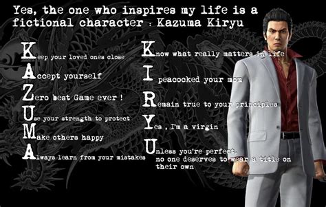 There will always be someone who needs help. Just *ahem* a regular guy. Web step up! the dragon of dojima, fourth chairman of the tojo clan and our hero. You suppose to be on the ground. Defeat me — kazuma kiryu when ichiban goes searching for answers that will help him unravel ryo aoki's plot, he runs into kazuma kiryu blocking his path. The treasure you're after is right up there. Web top kazuma kiryu quotes. Use whatever you want, majima. Kiryu was raised in the sunflower orphanage along with his closest friend akira nishikiyama and the woman he's always loved, yumi sawamura. Someone we need to protect.