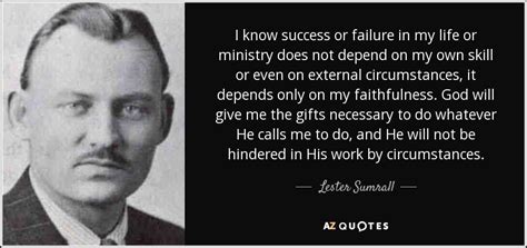 Lester Sumrall Quote “I know success or failure in my life or ministry