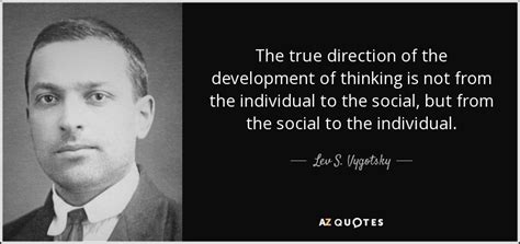 Lev Vygotsky Quotes. The true direction of the development of thinking is not from the individual to the social, but from the social to the individual. The development of higher psychological processes tags: