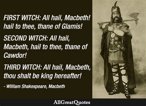 Macbeth Prophecy Quotes. That he will be a thane, that he will be king, and that banquo's sons too will be kings. Prophecy sets macbeth’ s plot in motion—namely, the witches’ prophecy that macbeth will first become thane of cawdor and then king.