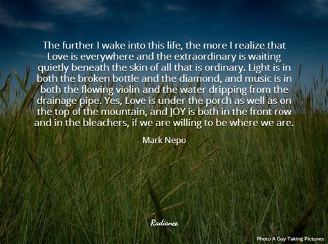 Web “whatever is held and listened to will show us where it lives in the world and in us.” ― mark nepo, the exquisite risk: The sun somehow hangs there in the sky. Web ― mark nepo, the book of awakening: Having the life you want by being present to the life you have 112 likes like “the further i wake into this life, the more i realize that god is everywhere and the extraordinary is waiting quietly beneath the skin of all that is ordinary. It blossoms and the bee comes.” ― mark nepo 100 likes like “if peace comes from seeing the whole, then misery stems from a loss of perspective. #who we are quotes #born quotes #obligation quotes. But the amount of bitterness we. Web 20 of the best book quotes from mark nepo 01 share “life is always where we are.” mark nepo author the book of awakening book ᐧ personal growth ᐧ teamwork ᐧ togetherness concepts 02 share The miracle of life just happens. 2.“the pain of life is pure salt;