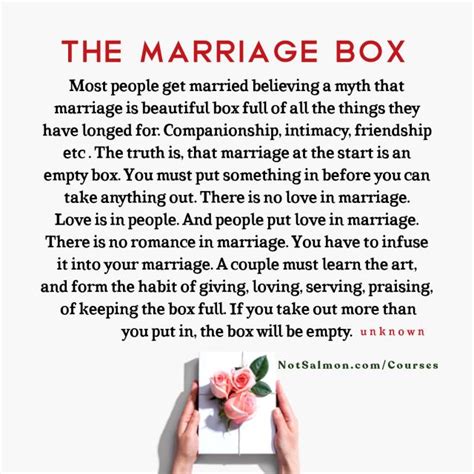 Soon the box will be empty. A simple wedding day quote that will let the couple know you truly love and care for them. Web the truth is, that marriage at the start is an empty box, you must put something in before you can take anything out. Web the marriage box quote. Web often a separation can be helpful for a marriage in crisis. May the years ahead be filled with love and joy. Web check out our marriage box quote for her selection for the very best in unique or custom, handmade pieces from our shops. Web 100 inspiring quotes on love and marriage 1. Here’s the famous marriage box quote to help inspire a happier and healthier love relationship. “love seems the swiftest, but it is the slowest of all growths. Web love quotes to inspire happy marriage “a happy marriage is a long conversation which always seems too short.” —andré maurois “happy is the man who finds a true friend, and far happier is he who finds that true friend in his wife.” —franz.