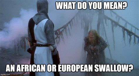 Monty Python African Swallow Quote. I do not own any of this material. Oh, yeah, an african swallow maybe, but not a european swallow.