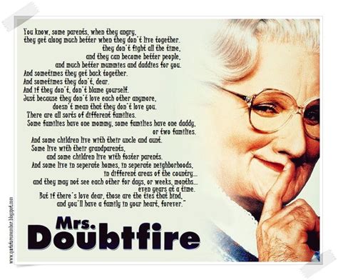Now they live in different houses. No, he was hit by a guinness truck. [takes a lime and throws it at stu's head. Do you have any special skills? Doubtfire quotes on divorce & strong family bonds 1. Oh i'm sorry, am i being a little graphic? Web mrs doubtfire quotes | etsy check out our mrs doubtfire quotes selection for the very best in unique or custom, handmade pieces from our digital prints shops. Robin williams, who also served as a producer, stars with sally field, pierce brosnan, harvey fierstein, and robert prosky. “i admire that honesty, natalie, that’s a noble quality. Doubtfire mask has been run over by a truck] would you be careful with this one? View quote ohh thank you, dear.