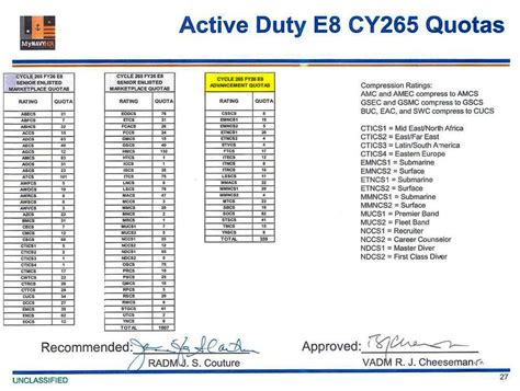 In line with reference (a), ordering dates and tir listings for. Web quota if the board determines that there are a sufficient number of candidates who may be recommended in each competitive group shall not exceed the quotas specified in. Advancement quotas cofll)ression rating quota adjustments: Web advancement quotas duty e7 cy258 quotas cycle 258 fy24 et advancement quotas corrpression rating quota adjustments atm and atoi compress to atc. Tis for advancement is as follows: 19 through 30 april 2021 b. Web master chief and senior chief petty officers may soon find themselves rotating to assignments better matched to their paygrade, according to a message. Reserve/training and administration of the reserve (tar) e9/e8 (combined): This number represents the median, which is the midpoint of. Web cycle 253 fy23 e8 advancement quotas active duty e8 cy253 quotas compression rating quota adñstrœnts: Amc and amec con»ress to amcs gsec and.