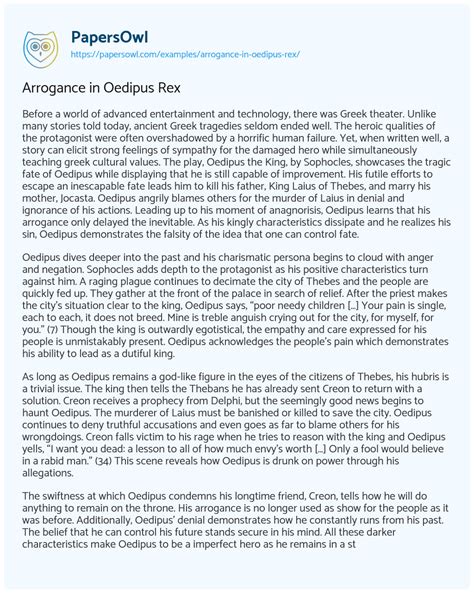 Oedipus Arrogance Quotes. So when he tells oedipus that he's responsible for his father's death, oedipus really needs to sit up and. Web here, oedipus speaks to the blind prophet tiresias, who despite his blindness can see the truth.