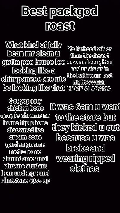 Do they really deserve it and why do people want to watch it go. Bruh shut your nasty ass up, i'm bout to get the packing on your ass. Nah i can't fuck with that. He used to be an. Web a packgod roast text is a form of weird copypasta that has grown in popularity on internet forums and platforms. Like 1.8m share save tweet protip: In a roast video, it's practically guaranteed that you'll hear a sentence you never thought you'd hear all day. So, to begin, a roast in my opinion is a quick, witty comment about someone that fits the characteristics of the. I heard enough of that. Press the ← and → keys to navigate the gallery, 'g' to view the gallery,. Watermelon, fruit roll up, chamoy and.