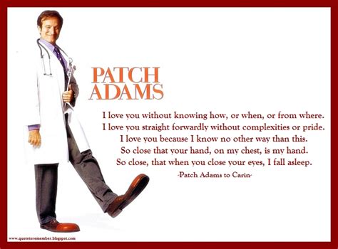 Web best patch adams quotes. The most famous and inspiring quotes from patch adams. I love you without knowing how, or when, or from where. I love you because i know no other way then this. I want more of that. Add it here the web's largest resource for famous quotes & sayings Photos (16) quotes (37) photos quotes hunter patch adams : Know another good quote of patch adams? But anyone can do something, it's not about being special. I know i can do something.