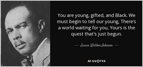 Quotations by james weldon johnson, american poet, born june 17, 1871. “the colored people of this country know and understand the white people better than the white people know. To see what your friends thought of this quote, please sign up! You are young, gifted, and black. From the creators of sparknotes. Read more quotes from james weldon johnson. James weldon johnson the colored people of this country know and understand the white people better than the white people know and understand them. And far as the eye of god could see darkness covered everything, blacker than a hundred midnights down in a cypress swamp. We have come over a way that with tears has been watered, We must begin to tell our young, there's a world waiting for you, yours is the quest that's just begun.