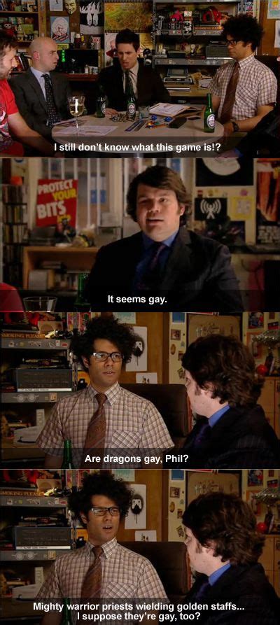 Quotes From The It Crowd. Go where the expectations and the demands to perform are high. Don´t listen to her, the bitch is crazy.