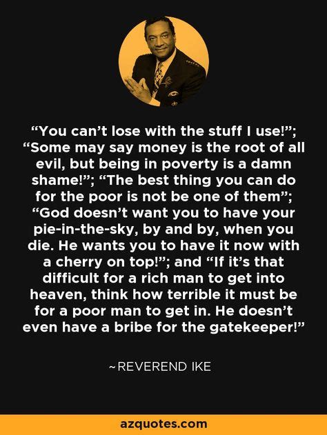 Reverend Ike Quotes. “some may say money is the root of all evil, but being in poverty is a damn shame!”; Web discover top inspirational quotes from reverend ike on wise famous quotes.