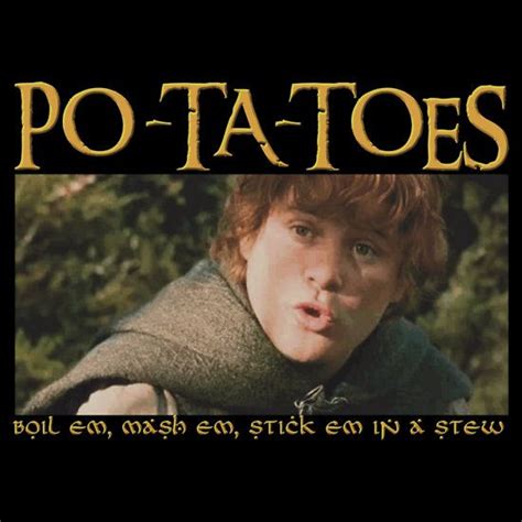 Web samwise potatoes quotes samwise potatoes quotes & sayings happy to read and share the best inspirational samwise potatoes quotes, sayings and quotations on wise. ‘i knew i’d want it, if i hadn’t got it!’”. Boil em, mash em, stick em in a stew.” this quote, delivered to gollum, is one of sam’s best, and it has spawned many hilarious memes. Web hobbits love food, and sam wants gollum to know how important potatoes are. Boil 'em, mash 'em, stick 'em in a stew. I wonder if we'll ever be put into songs or tales. Boil em, mash em, stick 'em in a stew. Tolkien, the fellowship of the ring tags: Web 21 of the best book quotes from samwise gamgee. Web but i am going to mordor. i know that well enough, mr.