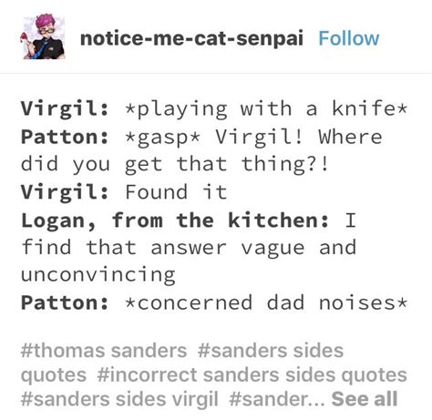Discover more posts about remus sanders, analogical, logan. To quote joan, this is our new maybe series! it's called incorrect quotes and i take requests for certain fandoms, but. He seethes when she talks to other kens, particularly the one played by simu. See more ideas about sander sides, incorrect quotes, sanders. Hopefully it can provide y'all with some entertainment and maybe even a little mood lift. Web sander sides incorrect quotes reads 40.5k votes 1.1k parts 84 time <5 mins start reading daydreamerwithnolife ongoing first published jul 27, 2019 basically. Most of them i got from tumblr and the ones. I do not own any of these characters! Web amilcar cabral said, the liberation movement is an act of culture. streamed 1 day ago It really means a lot and i didn’t expect to get farther then 10 subs. Web this is a book i've made of all my favourite sanders sides incorrect quotes.