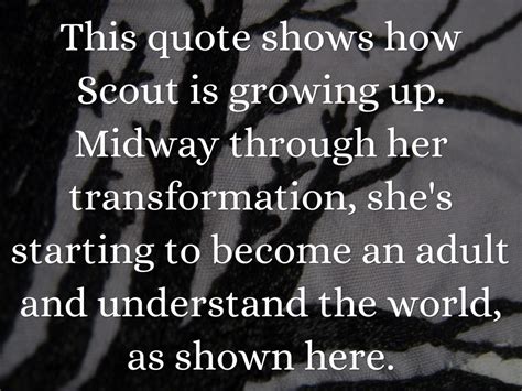 Scout Maturing Quotes. She is an innocent girl, but as the story. They all come out in the.