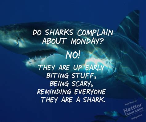 Web explore 132 sharks quotes by authors including gemma collins, sylvia earle, and robert kiyosaki at brainyquote. “i think a relationship is like a shark. Web audiences love to hate them. It’s monday, the day that many of us dread. Web 12 quotes to kick ass! Web he doesn't fear.” ― peter benchley, jaws tags: This week, discovery celebrates the 30th anniversary of shark week. Great gift idea for all sharks lover. They get up and start biting. Web “what do sharks do on monday mornings? “sharks are beautiful animals, and if you’re lucky enough to see lots of them, that means that you’re in a healthy ocean.