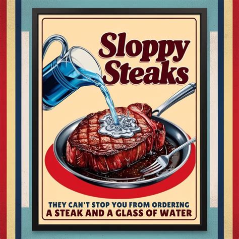 Next thing you know, we were dumpin' that water all over 'eem,. Web steak sayings and quotes for meat eaters, there’s not many things more decadent than a sizzling steak cooked to perfection. Generously season the steak with salt and pepper. Web check out our funny steak quotes selection for the very best in unique or custom, handmade pieces from our digital prints shops. Web if you don’t believe me, drop a reference about “tables” being your job or mention “sloppy steaks.” creator and star tim robinson has come up with so many. Web they said no sloppy steaks guys, please, but they can't stop you from ordering a steak and a glass of water! “i mean, you walk by a store that has 50 guys who look just like me fighting over very complicated shirts, you go in. Let sit at room temperature for 30 minutes. Web check out our sloppy steak gift selection for the very best in unique or custom, handmade pieces from our cookware shops. “i'll stop eating steak when you stop killing spiders..