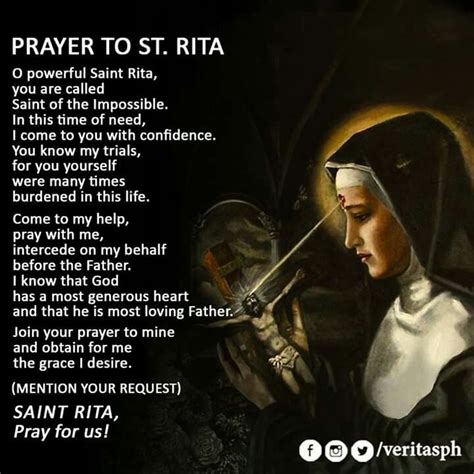 Rita, whose pleadings before thy divine lord are almost irresistible, who for thy lavishness in granting favors hast been called the advocate of the. Her prayers did not prevent her husband's death due to political turmoil. Web 1) married at a young age and had twin boys. Rita became holy because she made choices that reflected her baptism and her growth as a disciple of jesus. Her sons almost followed in his footsteps but were saved! Rita, whose feast day is may 22, is a saint we hear of infrequently, perhaps because she had such an unusual life. The bread of life helps the body and the soul. Photo by adrien olichon on pexels.com. Web quote of the day: Web “not just because of the wonders of her intercession.