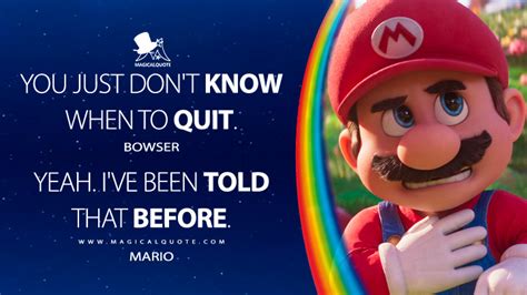 Super Mario Quotes. New this month continuity mistake: When peach and toad return to the mushroom kingdom on her motorcycle, they enter through the back of the castle, across.
