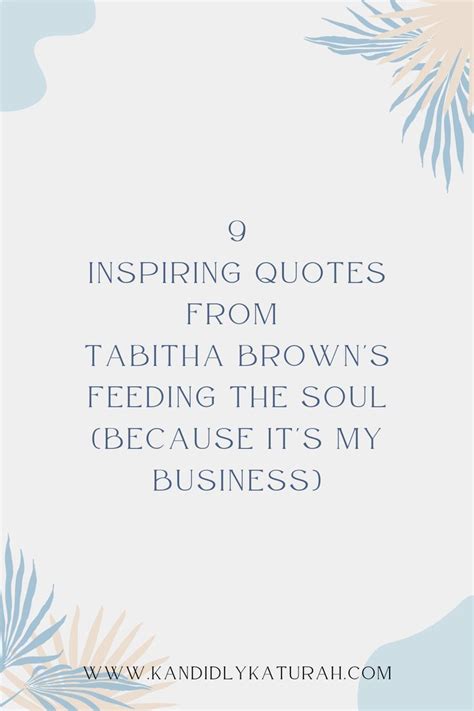Because i am able, i smile. She said, baby, go on 'bout your business, have the most amazing day. Born february 4, 1979) is an american actress and social media personality. She creates online video content incorporating veganism, humor and motivational speaking. Web “the more you understand how worthy you are, the more likely you’ll find your strength again.” ― tabitha brown, feeding the soul (because it's my business): Watching my granny and my mom, it's like, okay you just put a little bit of that and taste it. I wasn't able to do my acting. Web tabitha bonita brown (née thomas; Web 62 quotes from tabitha brown: Finding our way to joy, love, and freedom 3 likes like “find your lane, baby.
