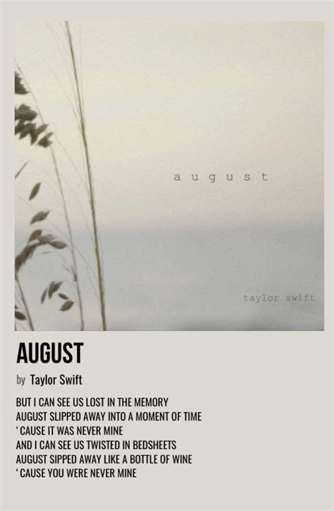 And i can see us twisted in bedsheets. Web my ultimate goal is to end up being happy. Web 16 hours agohave you heard? 5.8k views 1 year ago #taylorswift #folklore #august. “you only get so many firsts; Not when you're being pushed beyond your limits,. 'cause it was never mine. “august slipped away into a moment in. Web these positive august quotes can help you do just that. Album song spotify valence value;
