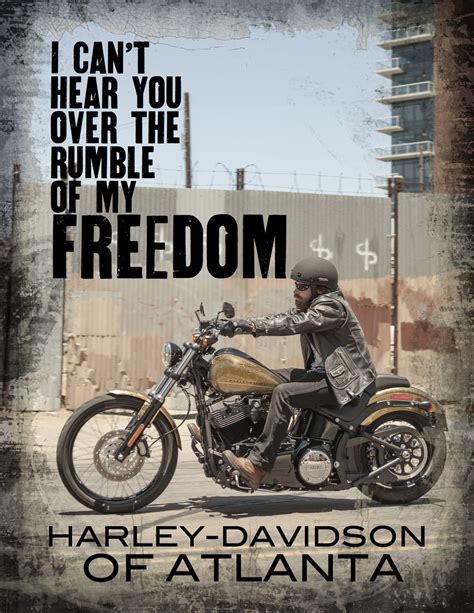 Anybody can jump a motorcycle. See more ideas about harley davidson, harley, harley davidson quotes. It’s only when i stop riding that i feel sad.” “harley davidson to the road is calling, and i must ride.” “just go for it. Web we’ve put together 50 of the best motorcycle quotes and harley davidson instagram captions in one place so you can focus on the road! Limited edition 120th anniversary collection. Meditation doesn't mean you have to. A harley davidson is not just a motorcycle, it’s a symbol of american freedom. Some take drugs, some drink bottles, i solve my problems by twisting throttles of my harley. Web don't fear dying, fear not living. Do it on a harley!