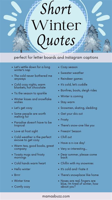 Winter is not a season, it’s an occupation. Quotes about the magic of snow, stressful driving, sad and so much more. Winter is putting footsteps in the meadow. 'tis the season to be freezin' cold hands, warm heart, can't lose. Quotes that are perfect for scribbling in your journal or sharing on instagram. Web short christmas sayings for signs and winter letter board ideas november 7, 2020 by amy 23 comments today, i’m bringing you a fun list of short christmas sayings for signs and letter boards to add some festive fun to. With that in mind, here are 101 winter quotes to not only warm your soul but also remind you how beautiful and inspiring this season can be. “spring passes, and one remembers one’s innocence. Explore our collection of motivational and famous quotes by authors you know and love. Get inspired and try out new things. Web winter quotes 1.